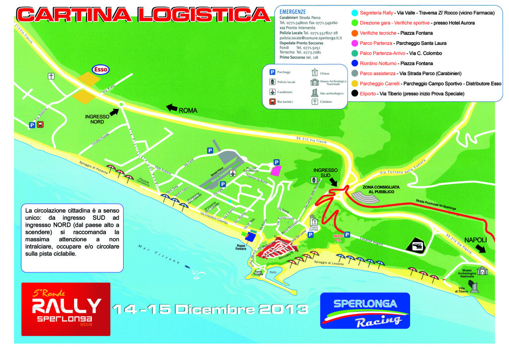 Introdotto lo scorso anno con ampia soddisfazione di tutti, il riordinamento nella vicina città di Fondi, verrà riproposto anche quest’anno. Con l’Amministrazione Comunale si ripercorre quindi l’esperienza del motor sport insieme,  il messaggio del rally dato nel 2012 ha convinto, soprattutto per l’essere veicolo importante per l’immagine del territorio.